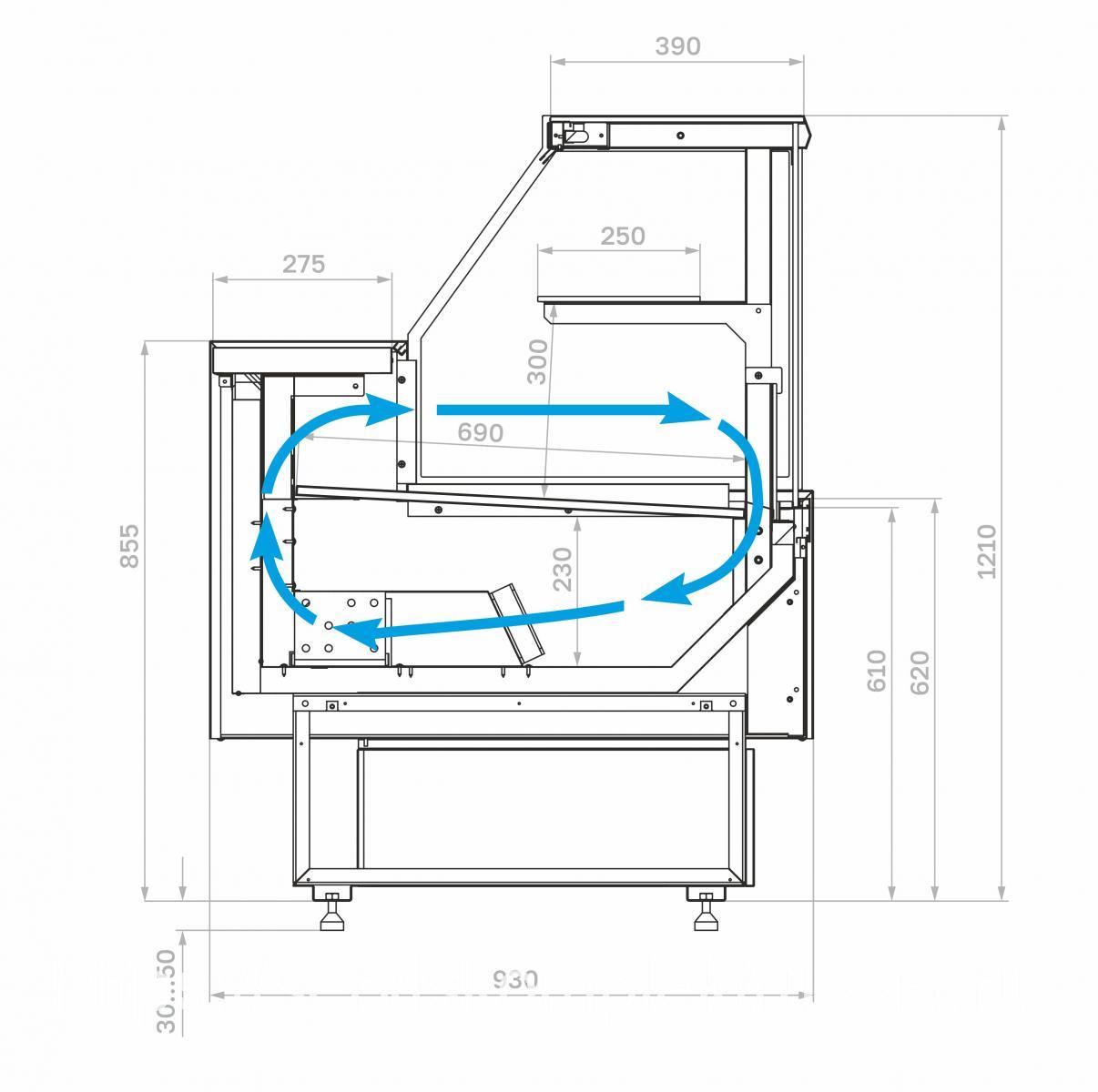 - Витрины предназначены для эксплуатации в закрытом помещении с естественной вентиляцией при температуре окружающей среды от +12 до +25 и относительной влажности не более 60%
