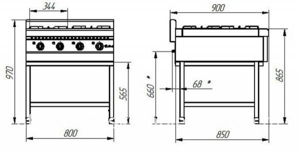 Газовая плита шестигорелочная на подставке ПГК-69П