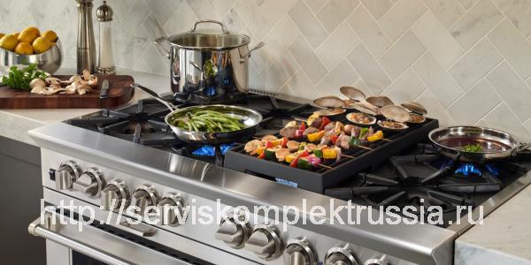 Плита имеет четыре горелки по 5,5 кВт и две мощные горелки "двойная корона" по 7,5 кВт. Плита снабжена устройством "газ-контроль". Внизу - открытая разборная поставка. Плита имеет регулируемые по высоте ножки. Вкомплект поставляются дополнительные съемные форсунки под "сжиженный газ"