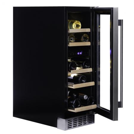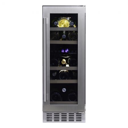 Компрессорный винный шкаф Dunavox DAUF-17.58DSS Инженеры компании Dunavox разработали новую модель встраиваемого винного шкафа DAUF-17.58DSS. Установить его можно под столешницу Вашего мебельного гарнитура. Ножки регулируются под нужную высоту. Модель идеально вписывается в любой подходящий для Вас интерьер гостиной кухни, бара или кабинета. В качестве дополнительной функции, производители Dunavox разработали реверсивную дверь. Это поможет разместить шкаф в удобном для Вас месте или расположить две модели рядом, создав технологию открытия side-by-side. Двойное стекло с защитой от прямых УФ-лучей поддерживает качественные условия хранения вина. Встроенная система вентиляции создаёт необходимую циркуляцию воздуха для правильной работы винного холодильника Компрессорный винный шкаф Dunavox DAUF-17.58DSS обладает средней вместимостью и способен разместить в себе до 17 бутылок. Располагаются они на выдвижных полках из массива бука. Внутреннее пространство шкафа разделено на 2 температурные зоны с возможностью настраивать каждую из них. Верхняя зона настраивается в диапазоне от +5°C до +12°C, нижняя от +12°C до +20°C. Электронный термостат помогает стабильно поддерживать заданную Вами температуру. Холодильник поддерживает влажность в диапазоне 60-80%, как в настоящем винном погребе. Для дополнительного повышения влажности предусмотрен контейнер для дистиллированной воды. Наличие «Зимнего режима» даёт возможность повысить температуру внутри шкафа, если температура в помещении упала ниже установленной для хранения вина. Угольный фильтр очищает воздух и предотвращает появление посторонних запахов, которые могут испортить вкус напитка. Лаконичный дизайн шкафа придаёт интерьеру современный вид. Чёрный корпус и рамка из бесшовной нержавеющей стали добавляют элегантности и солидности. В этой модели использовано освещение синего цвета, которое обеспечивает равномерную подсветку всех полок. (Освещение плавно включается при открывании дверцы, а через пару секунд после закрытия плавно гаснет.) Дополнительно у данной модели шкафа предусмотрен демонстрационный режим, во время которого освещение не гаснет. Такая функция помогает демонстрировать винную коллекцию Вашим друзьям и близким. Удобное и понятное сенсорное управление, исключает вероятность случайного нажатия. Если Вы забыли или не до конца закрыли шкаф – сигнализатор двери оповестит об этом. Винный шкаф DAUF-17.58DSS – современное решение в вопросе хранения вин. Отличительные особенности Две температурные зоны Дверца из бесшовной нержавеющей стали Перенавешиваемая дверь Углублённый цоколь Сигнализатор открытой двери Затемненное стекло с УФ-фильтром Светодиодное освещение Плавное включение и выключение освещения Зимний режим Класс энергоэффективности G Сенсорное управление Встроенная система вентиляции Регулируемые ножки Вентилируемые зоны Dunavox оставляет за собой право изменять параметры без предварительного уведомления.