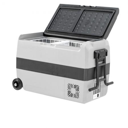 Компрессорный автохолодильник Alpicool ET50 (12/24) Alpicool ET50 (12/24) - одна из моделей последнего поколения! Стильный и современный компрессорный автохолодильник с внутренним объемом 50 литров, работающий на безопасном и эффективном хладагенте R-134A. Внутреннее пространство данной модели представлено в виде просторного отсека, разделенного на две части, в каждой из которых Вы можете устанавливать необходимую температуру. Отсеки разделяет специальная перегородка, при изъятии которой, внутри холодильника образуется единый температурный режим. Вы можете с легкостью разместить достаточно большое количество продуктов и ёмкостей с напитками внутри каждого отделения. При открытии автохолодильника срабатывает датчик, за счет чего сразу же включается внутреннее освещение, равномерно распределяющее свет на оба отсека (даже при выключенном питании). Данная модель может работать в трех режимах: охлаждение, заморозка и глубокая заморозка. Охлаждение происходит по всем четырем внутренним стенкам отсека, за счет чего Вы можете не переживать за сохранение свежести содержимого – все продукты останутся в их первозданном виде. Обратите внимание, что температура в зоне компрессора должна устанавливаться либо такой же, либо ниже, чем во второй зоне. Рабочая температура автохолодильника может настраиваться и автоматически и поддерживаться в диапазоне от +20 °C до -20 °C. На дне морозильной камеры есть специальное сливное отверстие, закрытое герметичной пробкой. Эта приятная мелочь сделает процесс размораживания и мойки автохолодильника простым и удобным. Дополнительная внешняя батарея позволяет установке работать в автономном режиме. Эта функция крайне удобна в различных случаях, где невозможно произвести зарядку от сети электропитания, например, если Вы решили выбраться на природу – на пикник, рыбалку, отдых с палатками, и у Вас нет возможности находиться рядом с автомобилем, чтобы осуществить зарядку от прикуривателя. Внешняя батарея позволяет автохолодильнику работать без подзарядки около 7 часов. Внешний вид модели Alpicool ET50 (12/24) отвечает всем необходимым требованиям – автохолодильник выполнен в спокойной серой цветовой гамме и оснащён дисплеем повышенной яркости. Благодаря этому данная модель прекрасно подойдет под дизайн любого автомобиля, а показания на дисплее будут хорошо видны даже в солнечную погоду. Рядом с дисплеем находится удобная панель управления, на которой расположены: кнопка включения и выключения; кнопка настройки, с помощью которой можно установить экономичный или максимальный режим работы компрессора, а также один из трёх уровней защиты аккумулятора автомобиля от разрядки; кнопки "+" и "-" для повышения и понижения заданной температуры; разъём USB для питания и зарядки небольших устройств. Крышка ET50 (12/24) – съемная. Это крайне удобная функция, поскольку благодаря ей, процесс извлечения/загрузки продуктов в автохолодильник становится куда более простым и быстрым. Поскольку данная модель относится к серии нового поколения, она оснащена большим количеством современных функций: USB-вход благодаря которому Вы можете подсоединить какое-либо устройство к автохолодильнику, для его работы или осуществления подзарядки;два дисплея, каждый из которых показывает температуру, заданную в разных отсеках; максимальный угол наклона к