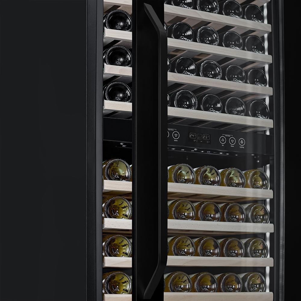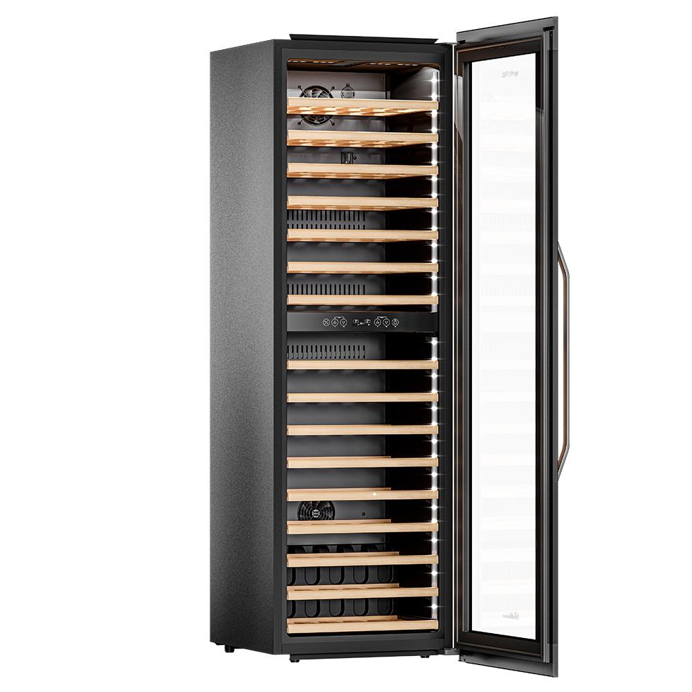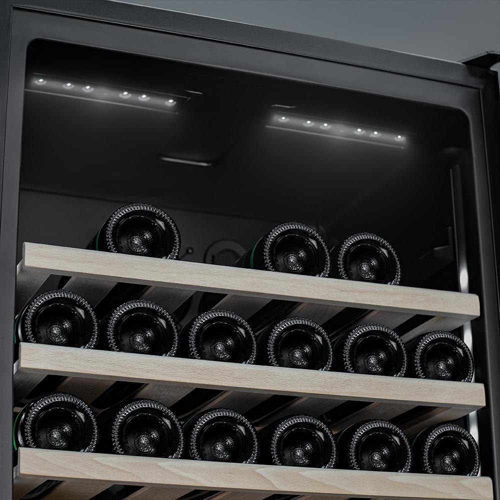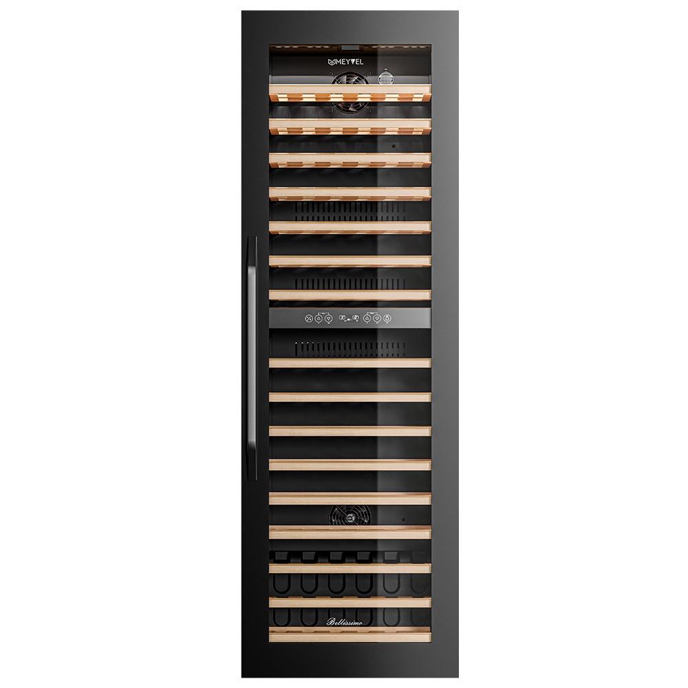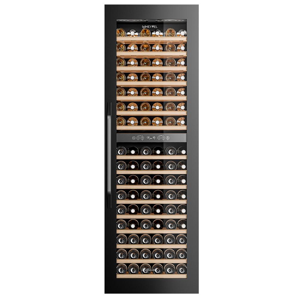 Винный шкаф Meyvel MV83-KBB2 Модель MV83-KBB2 имеет привлекательный внешний вид, сочетающий в себе неподвластное времени очарование натуральных материалов с высокотехнологичными системами сохранения продуктов. Встраиваемый винный холодильник Meyvel MV83-KBB2 оснащен дверью с защитой от ультрафиолетовых лучей и отлично подойдет для хранения и созревания различных сортов вин. Динамическая система охлаждения обеспечивает оптимальную температуру для вина и сохраняет необходимую влажность внутри камеры. Универсальный микроклимат Компрессорный винный шкаф Meyvel MV83-KBB2 обладает большой вместимостью и способен разместить до 96 бутылок. Располагаются они на полках из массива бука. Внутреннее пространство шкафа разделено на 2 температурные зоны с возможностью настраивать каждую из них. Общий температурный диапазон от +5°C до +18°C. Холодильник поддерживает влажность в диапазоне 60-80%, как в настоящем винном погребе. Электронный дисплей Быстро задавайте необходимую температуру для содержимого и управляйте всеми функциями холодильника с помощью интуитивно-понятного расположения кнопок на электронном дисплее. Преимущества винного шкафа Meyvel MV83-KBB2: Вместимость 96 бутылки 0,75 л; Температура верхней зоны от +5°C до +18°C; Температура нижней зоны от +10°C до +18°C; Наличие угольного фильтра; Память настроек; Удобное электронное управление; Внутренний вентилятор, отдельный для каждой зоны, позволяет равномерно распределять температуру.; Тройное стекло с УФ-фильтром; Встраивается в нишу; Выдвижные полки из массива бука. Обратите внимание: прежде чем устанавливать винный шкаф, ознакомьтесь с указанными в инструкции показателями напряжения (В) и частоты (Гц) и убедитесь в том, что они совпадают с уровнем показателей в Вашем доме; не наклоняйте винный шкаф более чем на 45°; не устанавливайте винный шкаф вблизи с нагревающимися электроприборами, а также в зоне прямого попадания солнечных лучей; после установки винного шкафа необходимо проверить, насколько ровно Вы настроили ножки, потому как использование винного шкафа, установленного под углом, может привести к поломке дверцы. Meyvel оставляет за собой право изменять параметры без предварительного уведомления.