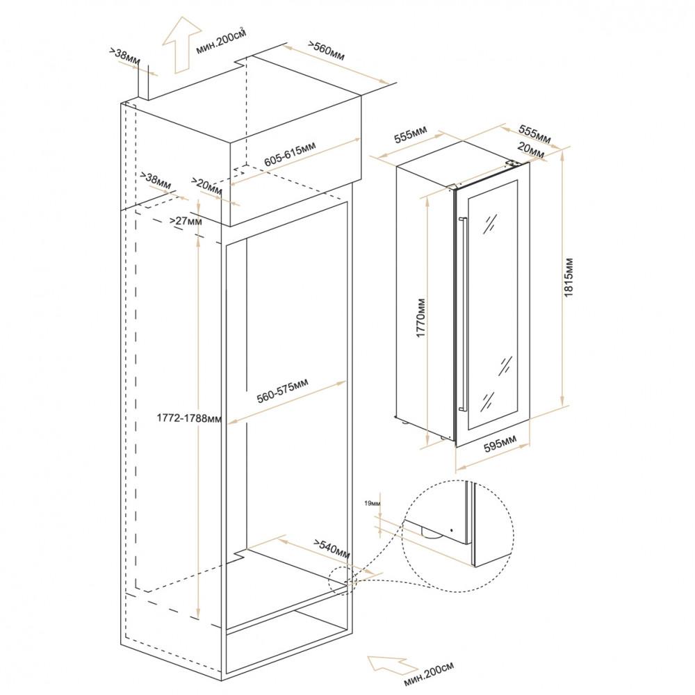 | Минимальный размер ниши (ВхШхГ), мм | 1772 х 560 х 540 |
