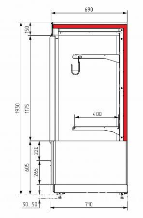 - Для витрин пристенных с фронтом типоразмер по длине 0,7 оснащен одной распашной дверью(правое открывание) с возможностью перенавески в заводских условиях