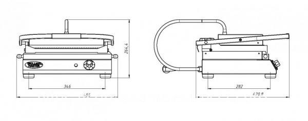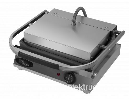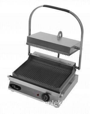 Гриль панини, две риф. чугунные жар. поверхности, подогрев поверхностей с 2-х сторон, терморегулятор 50-320С, фиксацияверхней поверхности в открытом положении, лоток для сбора жира, материал корпуса - н/сталь